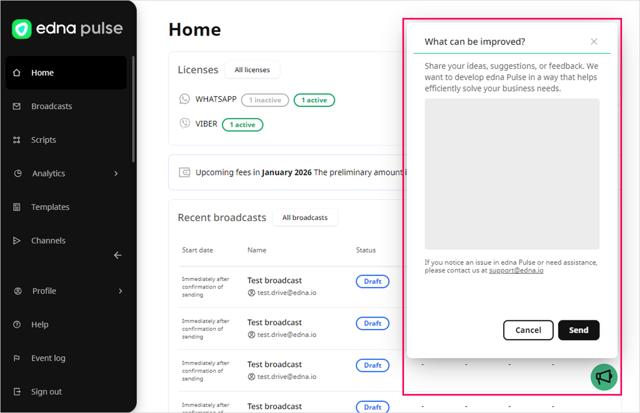 Added a feedback widget, available on all pages of your edna Pulse personal account.