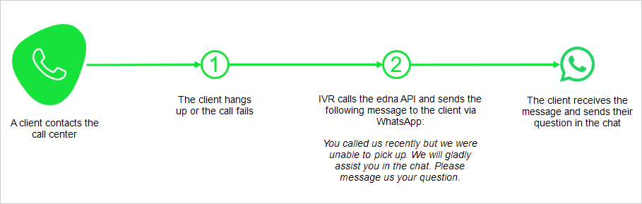 - The IVR system calls edna API to send the template message to the client via WhatsApp.